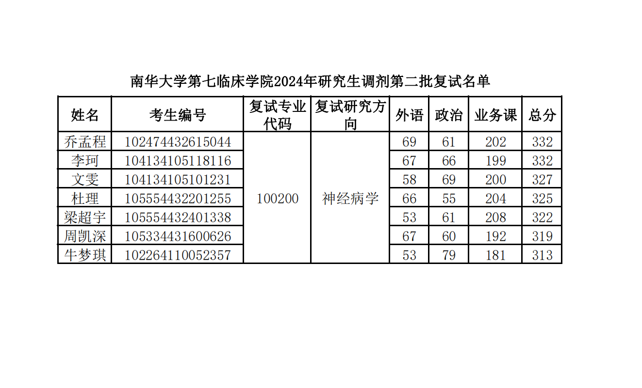 南华大学第七临床学院2024年研究生调剂第二批复试名单